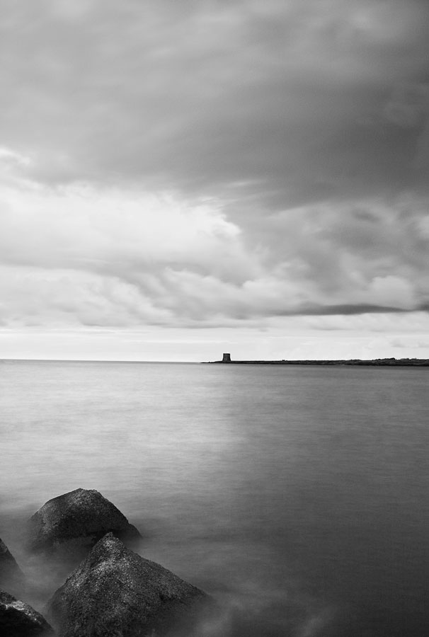 Splendida la resa della lunga esposizione...l'acqua e quella "nebbiolina" sugli scogli...non saprei soltanto per il taglio compositivo degli scogli...