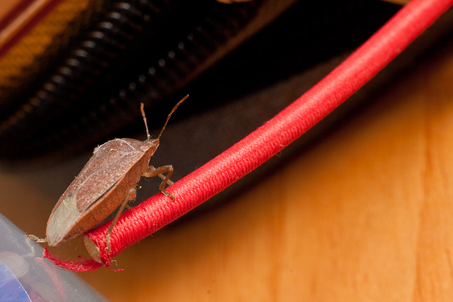 Oltre a non poter stringere più di tanto (ero già vicino alla minima distanza di MAF), mi piaceva l'idea di uno scatto ambientato, che rendesse un po' l'idea di una piccola impresa per la cimice.