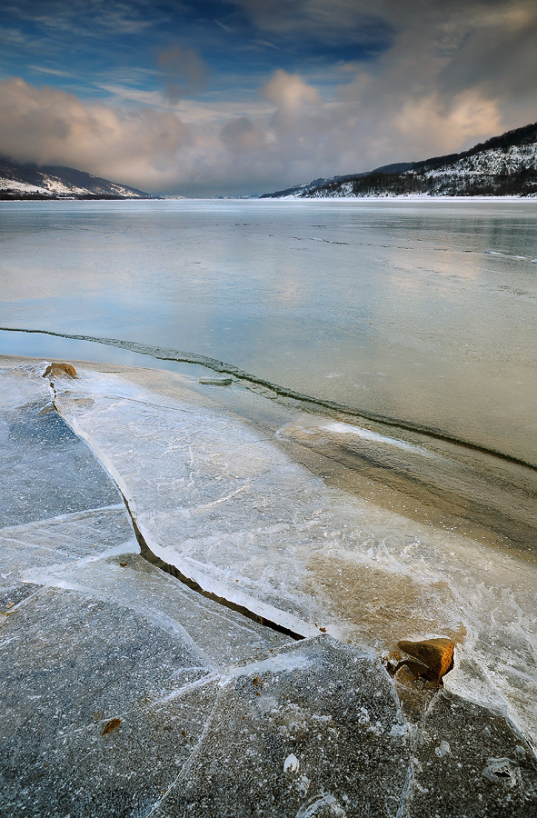 Bella nella sua completezza ... di due centri d'interesse:il ghiaccio fratturato+ il cielo.