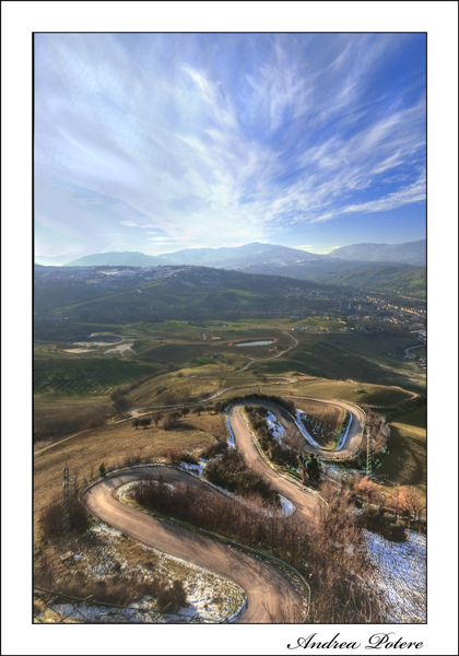 Lo zizagare che dal pp si perde fra i declivi trova la bella corrispondenza di un cielo ugualmente accattivante.