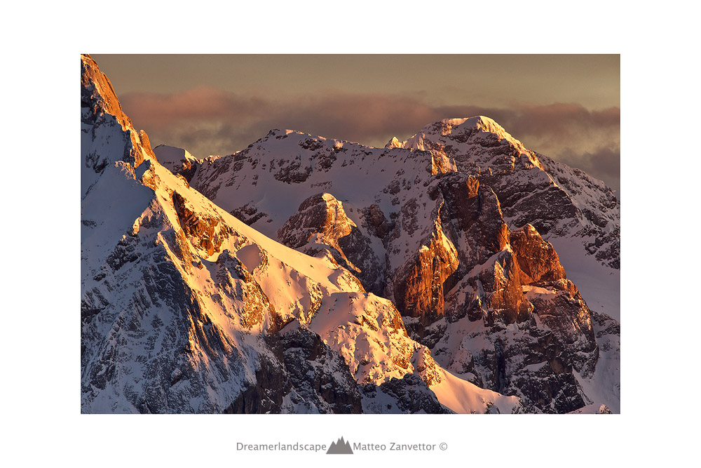 la focale usata, insieme alla bellezza della luce, restituisce una forte tridimensionalità a queste montagne che ci appaiono nella loro grandezza e maestosità; esposizione perfetta sia nelle zone in luce che in quelle in ombra.