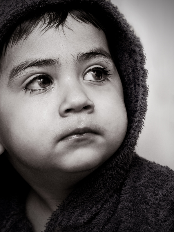 Costruzione attenta del fotogramma nell'inquadratura stretta che tutta si condensa sugli occhi attenti e intrisi di luce del piccolo: il taglio a sinistra, ....reso un pò problematico dal taglio dell'orecchio, "stringe" sulla figura e rende più evidente la leggera inclinazione del viso.