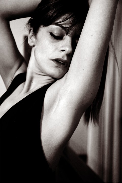 Ritratto molto bello, sia il B/W ma soprattutto la posa e l'attimo colto molto sensuale in una composizione originale.