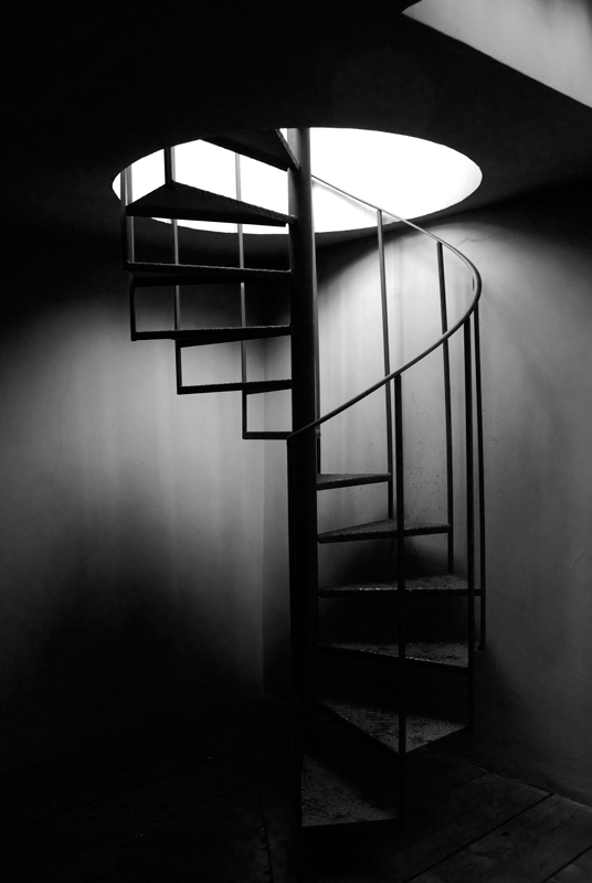 E' in un certo senso una fotografia evocativa e misteriosa, che riesce a suscitare determinate sensazioni nell'osservatore. La luce e il b/n ti hanno aiutato tantissimo sotto questo punto di vista e il bianco puro in cima alla scaletta può aver un suo preciso significato