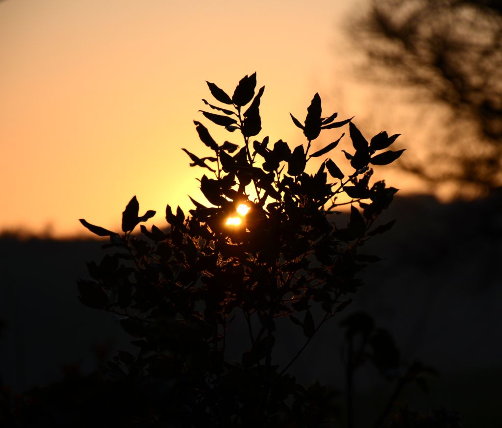 Controluce ben gestito, con la fronda ancora leggibile contro lo sfondo scuro.