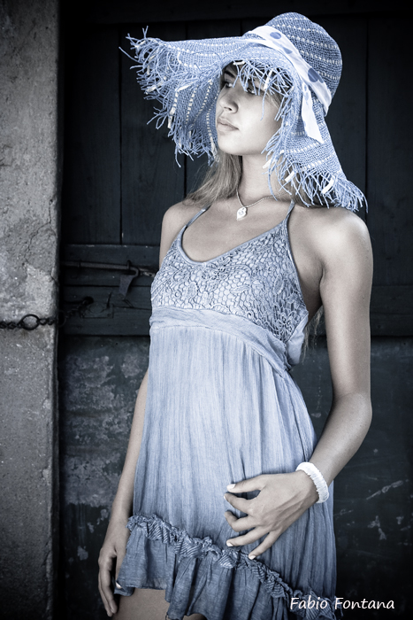 Complimenti, mi piace molto al cromia e la postproduzione in generale. L'unico appunto che mi viene da farti è che la luce, pannello o altro che sia, sarebbe stata meglio direzionarlo un pochino più in alto, magari da un punto più basso, per illuminare meglio il volto. Smile