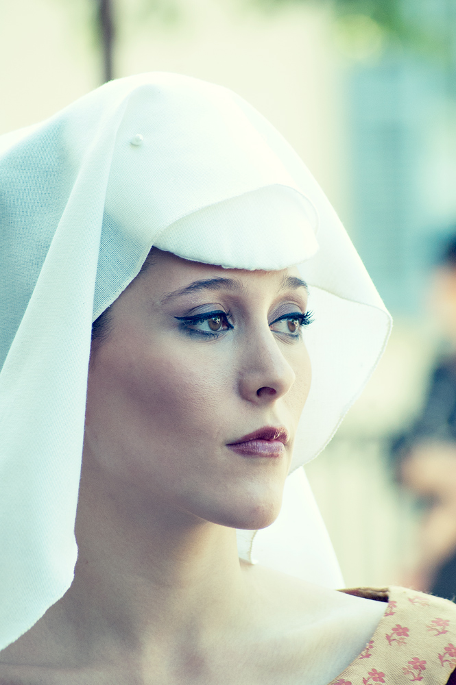 Evidentemente si tratta di una ripresa in estemporanea, probabilmente durante una rievocazione storica, con quanto questo comporti in termini di complicazioni ambientali: per cui un primo plauso lo rivolgo alla corretta gestione della composizione sia in termini di taglio che scelte espositive, che ti hanno consentito di valorizzare al meglio il soggetto.