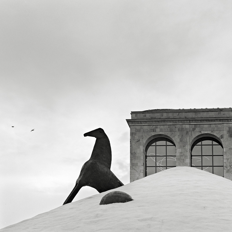 Ottima composizione per l'opera di Mimmo Paladino...in questo caso il bianco e nero è obbligato e la resa che hai ottentuto è molto convincente...