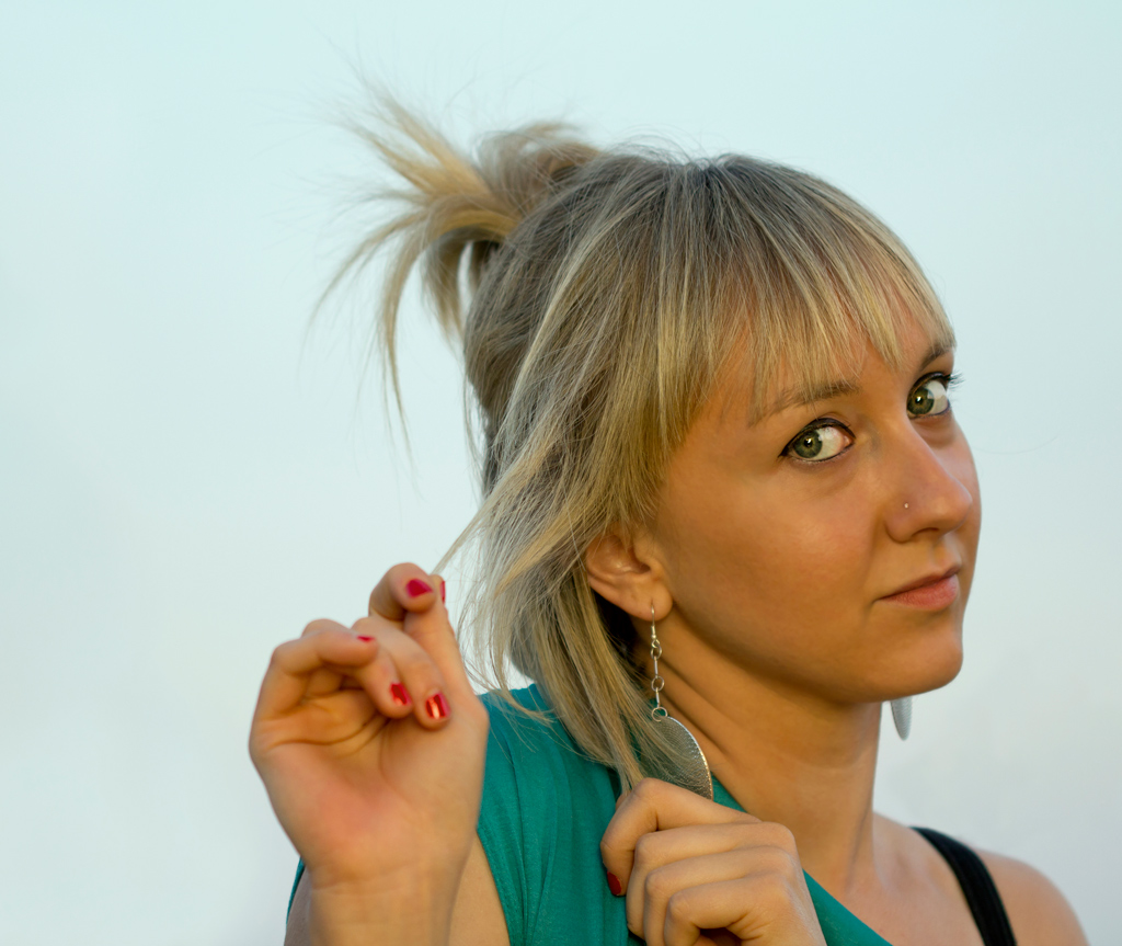 Io vedo una dominante gialla, a parte questo mi piace, è uno scatto piacevole e vagamente sbarazzino, vedo che questa volta hai salvato il bianco degli occhi decisamente meglio così! Ha un'iride spettacolare questa ragazza, prova un straprimissimo piano sugli occhi, è obbligatorio!  |