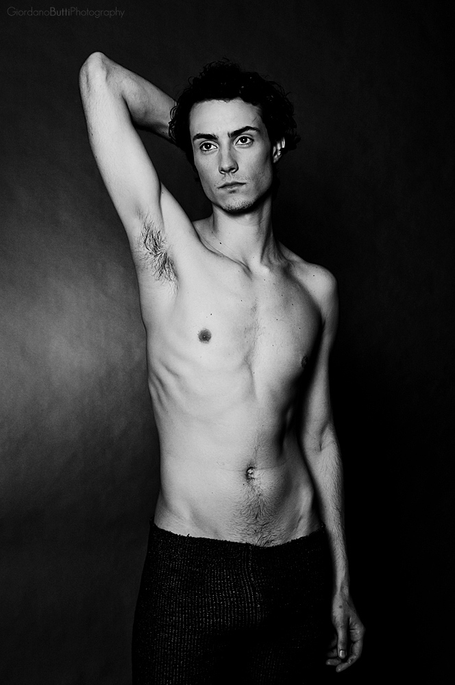 Solitamente avrei storto il naso per una posa "ascella in avanti", ma qui il gesto di portare la mano dietro ai capelli trasmette a tutto il corpo una torsione verso l'alto, direttamente verso la luce.
