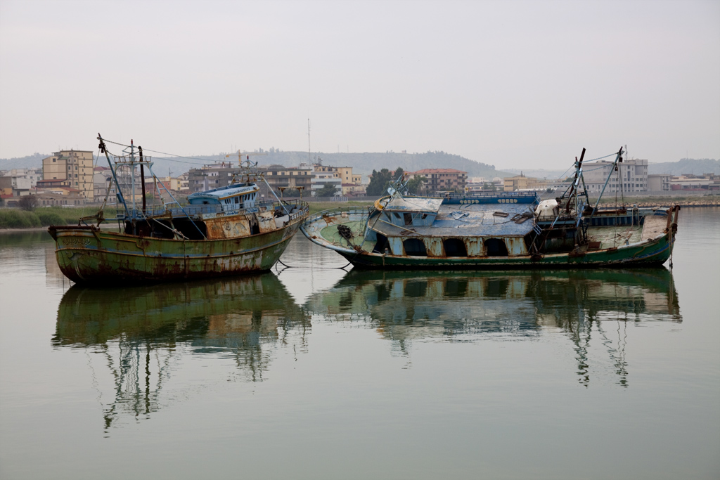 Queste sono alcune delle fatiscenti barche con cui dei profughi attraversano il mediterraneo.