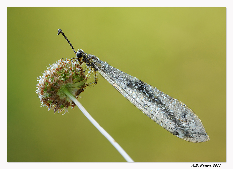 Soggetto difficile da rappresentare in modo ottimale per via sia della colorazione che dalle lughe ali, sei riuscito a ottenere un ottimo scatto, molto bella la trama alare con le goccioline di rugiada forse un pelino di luce in piu' sulla parte anteriore del soggetto (piu' facile a dirsi che a farsi) avrebbe reso perfetto uno scatto gia' di per se ottimo.