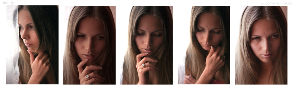 Ciao Domenico, apprezzo molto la tua miniserie, è un bel racconto; del resto ogni foto è quasi sempre un romanzo, specialmente il ritratto. In queste hai colto delicatezza e introspezione, il tutto con cura affettuosa e attenzione alla persona, sovrano regna un delicato silenzio che avvolge la ragazza. Non credo ci siano appunti tecnici da fare, sono molto belli i tagli.
