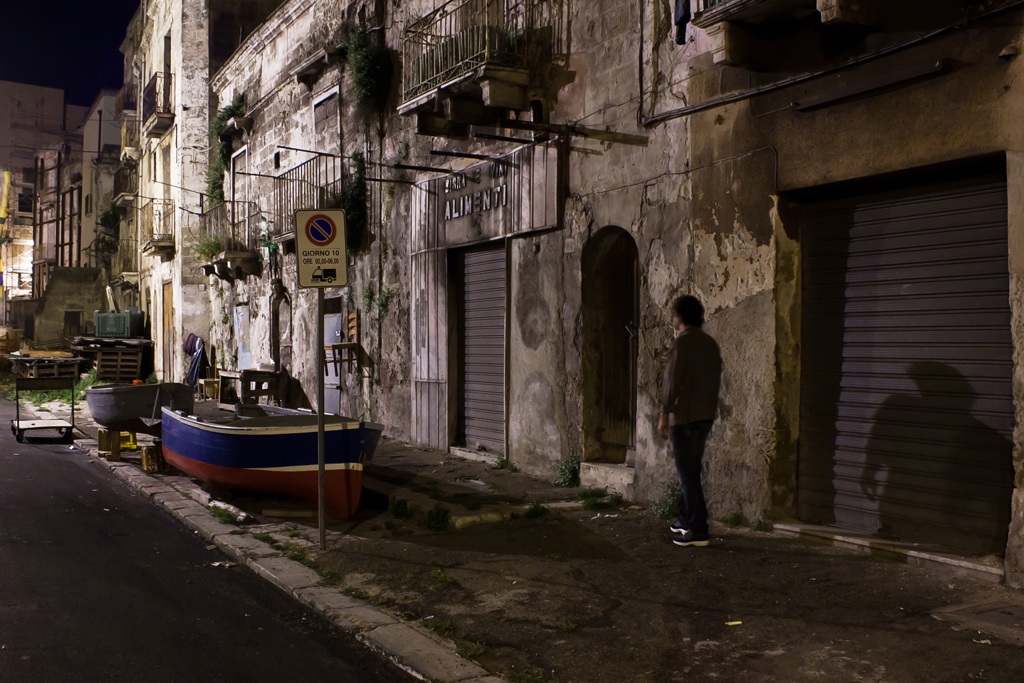 La mia foto è l report di uno scorcio urbano, in cui cerco di far risaltare la "stranezza" di trovare due mezzi di trasporto (le due barche) parcheggiate (direi in maniera poco usuale ) sul ciglio di una strada come se fossero due macchine, davanti a un negozio di alimentari, sotto un cartello che segnala una data di divieto di sosta, il tutto in un contesto abbastanza "stralunato" (è un tratto semi-abbandonato della città vecchia) e sotto il passaggio indifferente di un umano a cui pare tutto normale (che poi per lui magari normale lo è davvero, visto che quelle barche sono lì da un pò).
