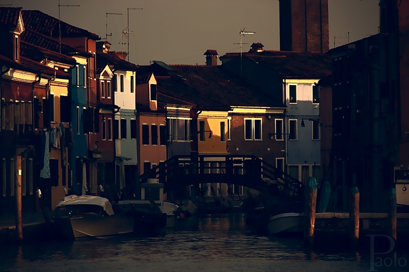 | ottima la lama di luce che illumina le variopinte case, su fondo nero in effetti si apprezza maggiormente la buona gestione della luce |