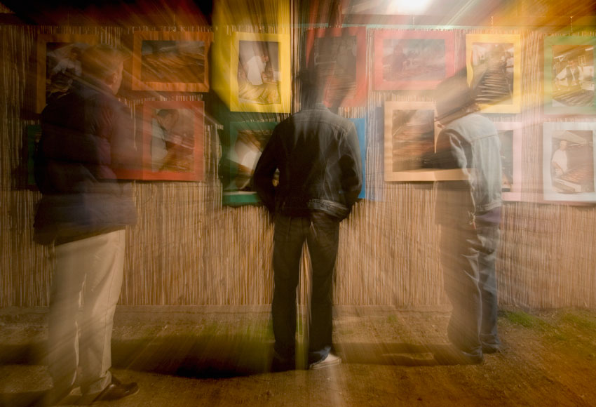 questa zoomata coglie l'obiettivo di enfatizzare la convergenza degli sguardi dei visitatori verso la galleria di immagini...