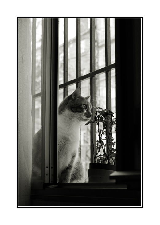 concedetemi un ringraziamento particolare a Webmin che come spesso accade è riuscito a leggere in profondità lo scatto, facendone emergere l'aspetto emotivo che è il senso stesso di questi due scatti....un gatto, una finestra aperta e una pianta....tradotto in "termini" emotivi: libertà, randagismo, radici.....