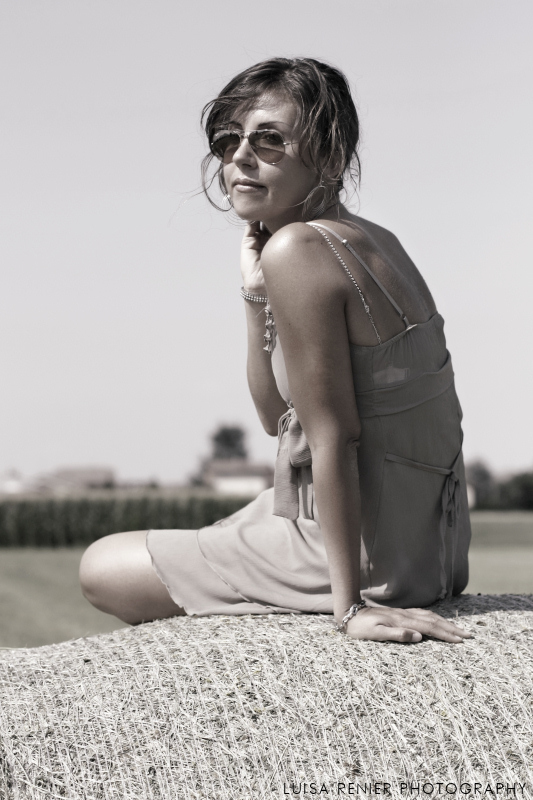 E' vero, ....c'è un certo sbilanciamento nella composizione con poca aria sopra rispetto al piede del fotogramma. Questo però non vuol dire che debba esserci una equivalenza del tipo ...tanto sopra, tanto sotto. La zona di appoggio è fondamentale per interpretare la posa della ragazza e ricreare soprattutto quell'effetto "sirenetta di copenaghen". Nella percezione della posa insomma la balla di fieno si equivale allo scoglio nella statua di Eriksen.