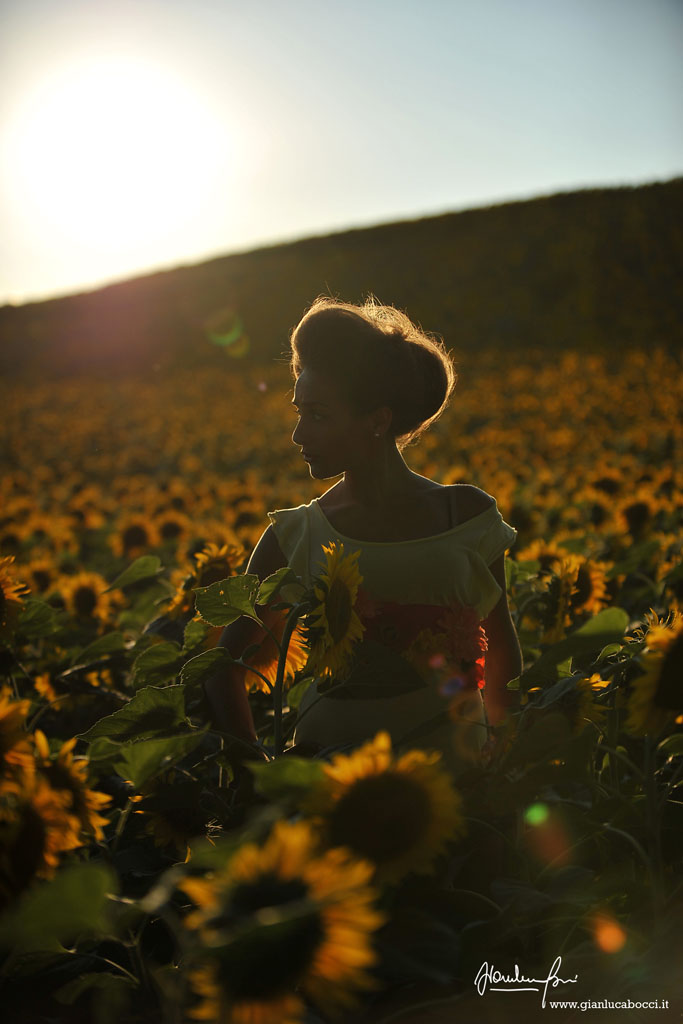 In una sessione fotografica con la modella Michela Rinaldi tra i girasoli (pieni d'api che hanno punto due volte l'eroica modella!) ho notato come i capelli cotonati dalla mia amica truccatrice ed acconciatrice Laura Bartolacci creassero con il volto un perfetto cuore, quindi gli ho dedicato uno scatto di profilo: voi che ne pensate?  _________________ Gianluca - www.gianlucabocci.it