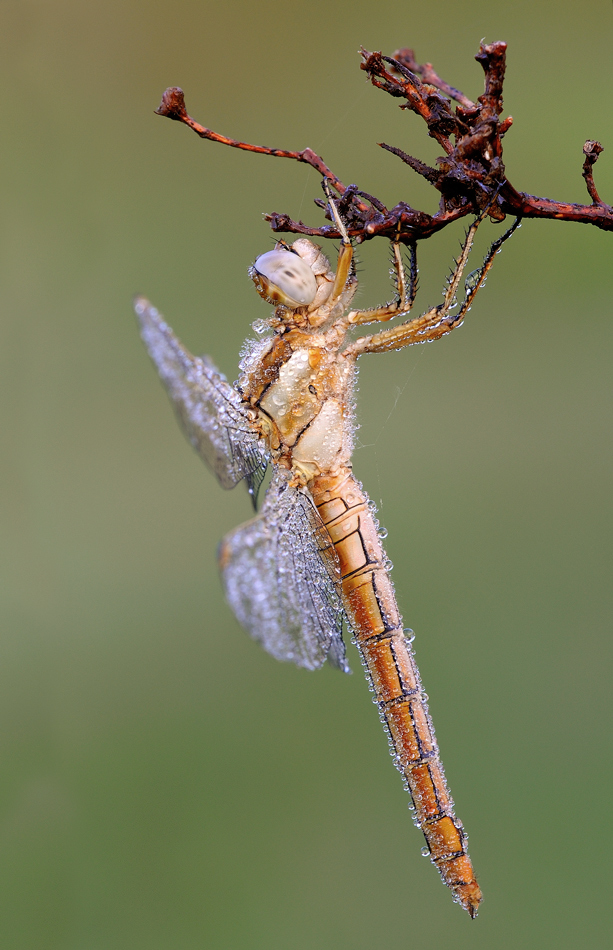 la luce è quella dei primissimi raggi di sole, che avvolgono questa piccola libellula in attesa di riscaldarsi...