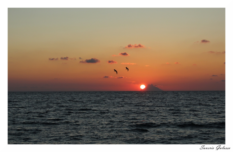 Bellissimo tramonto, quella in lontananza che comincia a nascondere il sole è una delle isole Lipari?