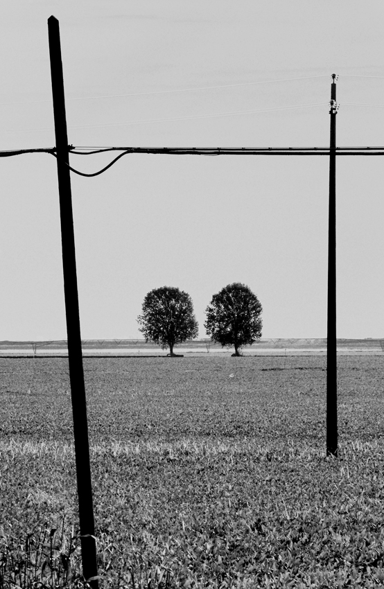 Bellissimo colpo d'occhio i due alberi quasi identici, incorniciati dai due pali della luce, in un inquadratura volutamente ricercata, fanno di questo B/N una foto riuscitissima.