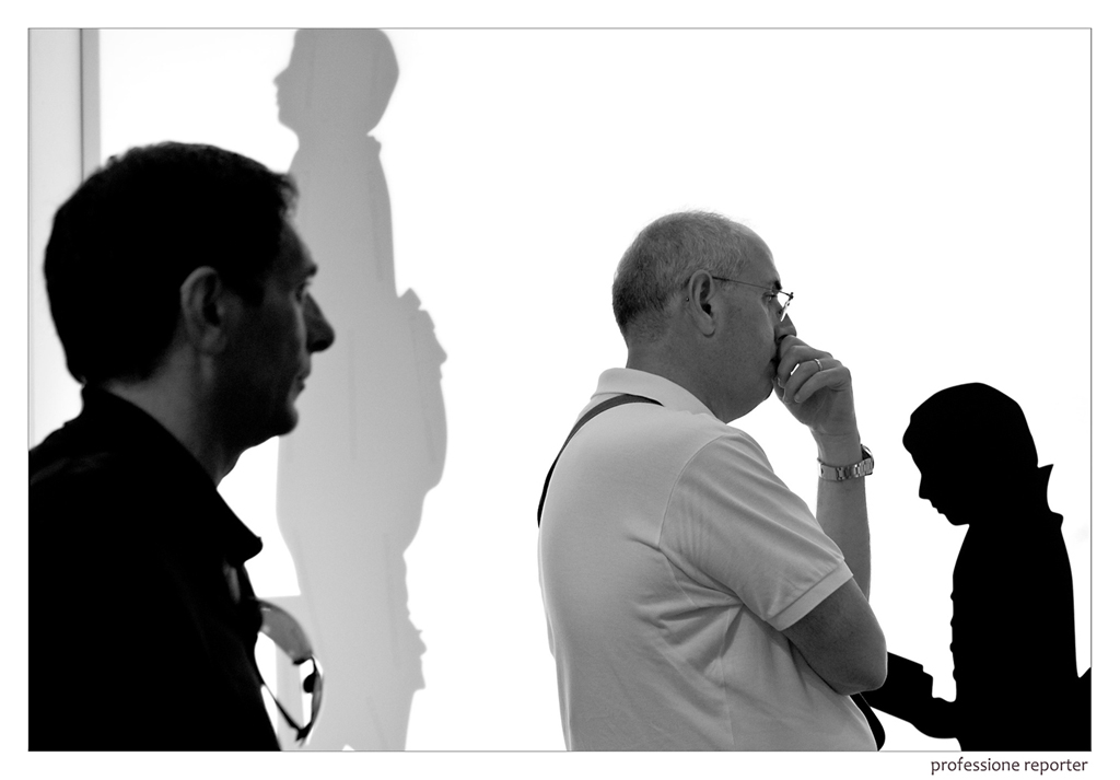 Purtroppo hai ragione: è una buona idea realizzata a metà. L'attenuante è che la sala era piccola e frequentata da turisti. Ed era vietato fotografare. Ne è venuto fuori uno scatto frettoloso e si vede. Però resta l'idea: mi piace molto la contaminazione tra uomini e silhouettes, per cui mi sa che tornerò a casa Leopardi.