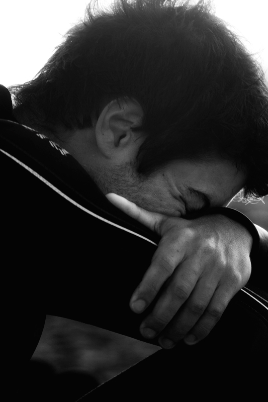 Sbadiglia? Dorme? Piange? Medita? Cerca una determinata concentrazione? Magari si, quello che indossa sembra una tuta sportiva, il risultato mi sembra molto spontaneo e comunicativo.