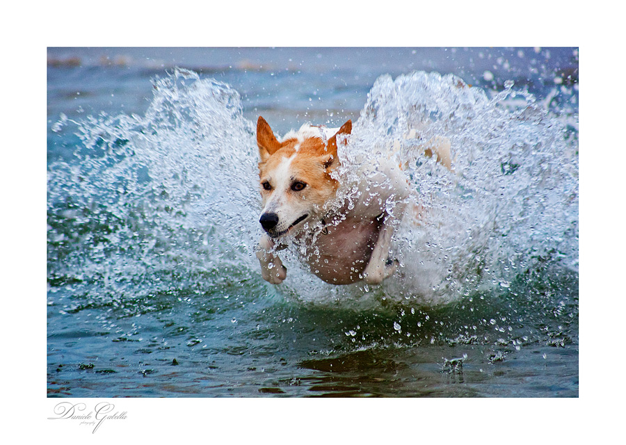 Ottimo il momento colto, e messa a fuoco perfetta. Sembra che il cane "esca" dall'acqua, e sembra di cogliere tutto "l'impeto" con cui corre.