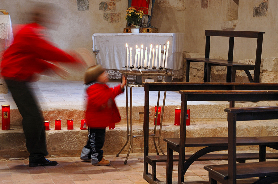 Questa è solo "un'istantanea" della mia compagna e mio figlio...stavo scattando all'interno della chiesa con annesso cavalletto montato... ho visto la scena ho preso il tutto e ho scattato ... non riesco a capire ancora come possa essere venuta cosi la mia compagna...