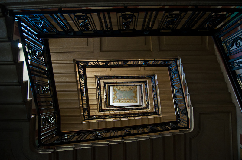 questo genere di foto richiedete sempre una precisione maniacale.. vedo qui invece una leggera traslazione del punto di ripresa verso il basso, in maniera da non avere in alto la visione perfetta della volta rettangolare.. per il resto, trovo bella la gestione della luce e dei colori.. Imbarazzato