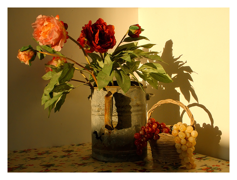 Ciao, i due amici che mi hanno preceduto hanno espresso ciò che ti avrei scritto, perciò aggiungo solo che mi piace molto (amo le nature morte) anche per la luce ed il colore che hai espresso, forse un pelo di nitidezza maggiore sui petali dei fiori..