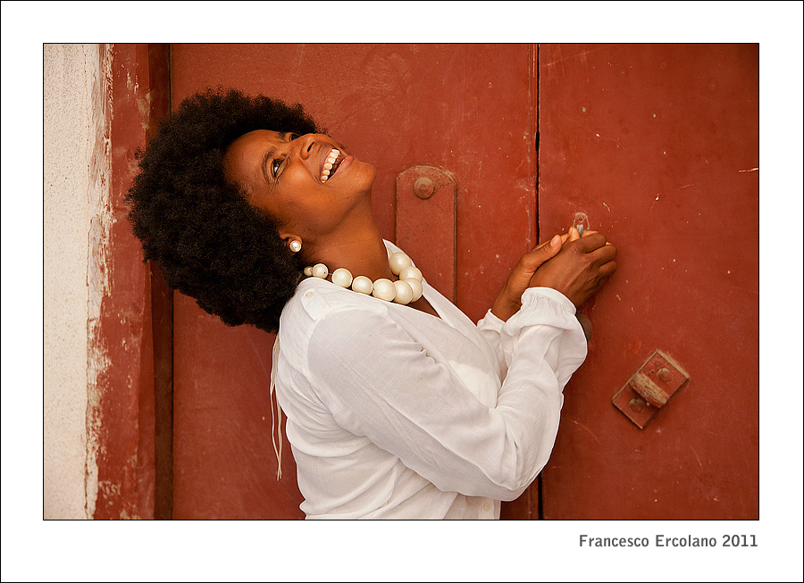 Vibra anche attraverso questo sottile gioco tra il movimento diagonale della posa ed il ritmo grafico delle linee verticali dello sfondo, questo raffinatissimo ritratto frutto di un occhio sensibile che ha ormai imparato ad ascoltare il cuore.