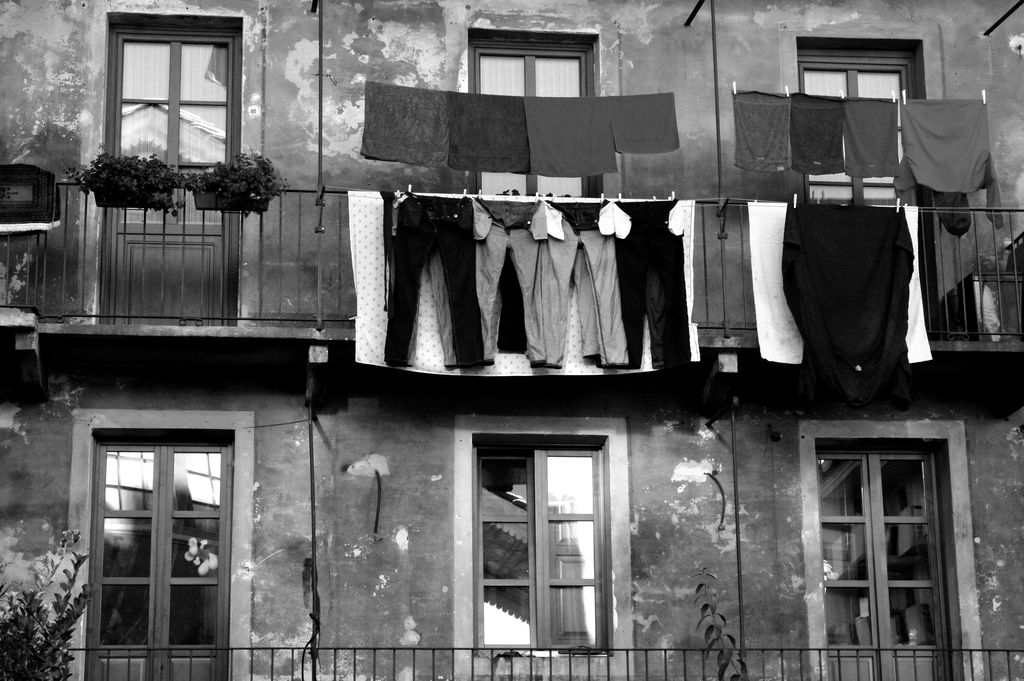 Bellissimo bn, bellissimi riflessi...peccato la mancanza di un soffio di vento su quie panni stesi...