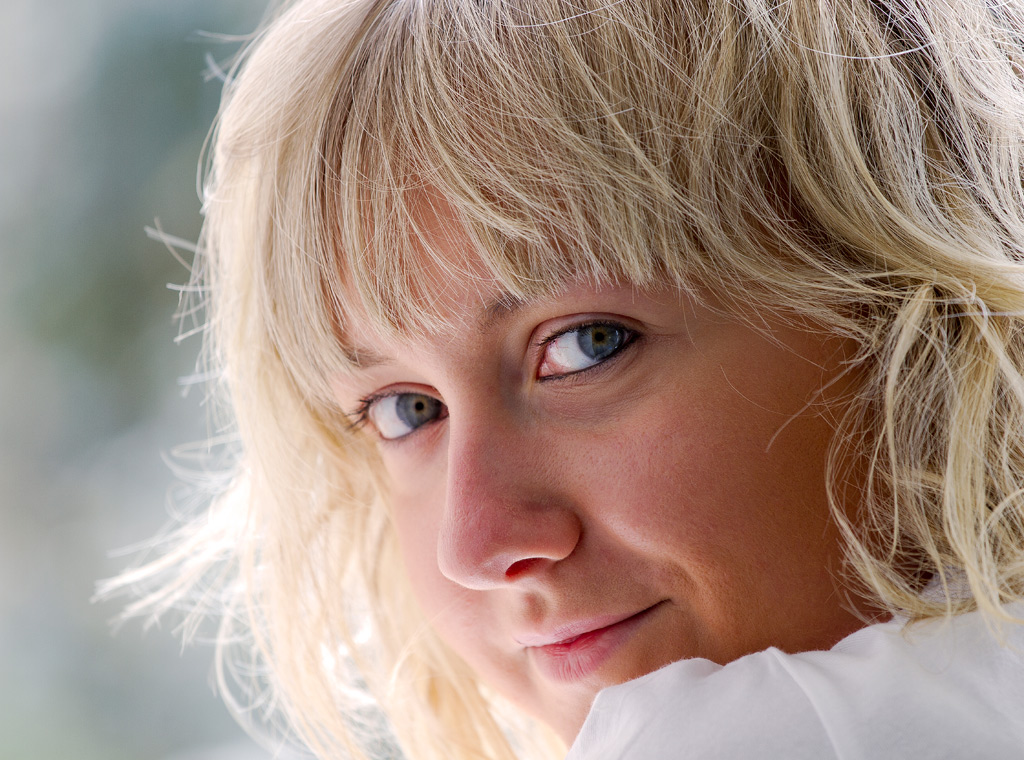 La fonte luminosa che sfiora parte del viso ed attraversa i capelli è ben gestita come controluce e risulta interessante .... e proprio perchè lo sguardo del lettore tende a cadere in quella zona che sarebbe stato meglio lasciare a fuoco anche l'altro occhio .