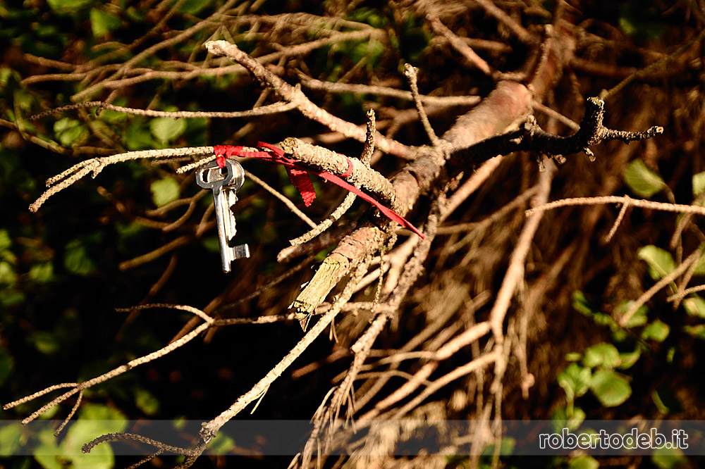 Volevo suscitare un po' di curiosità e mistero, per prima cosa per la situazione, con queste chiavi appese nel bosco col nastro rosso, e poi sfruttando la luce.