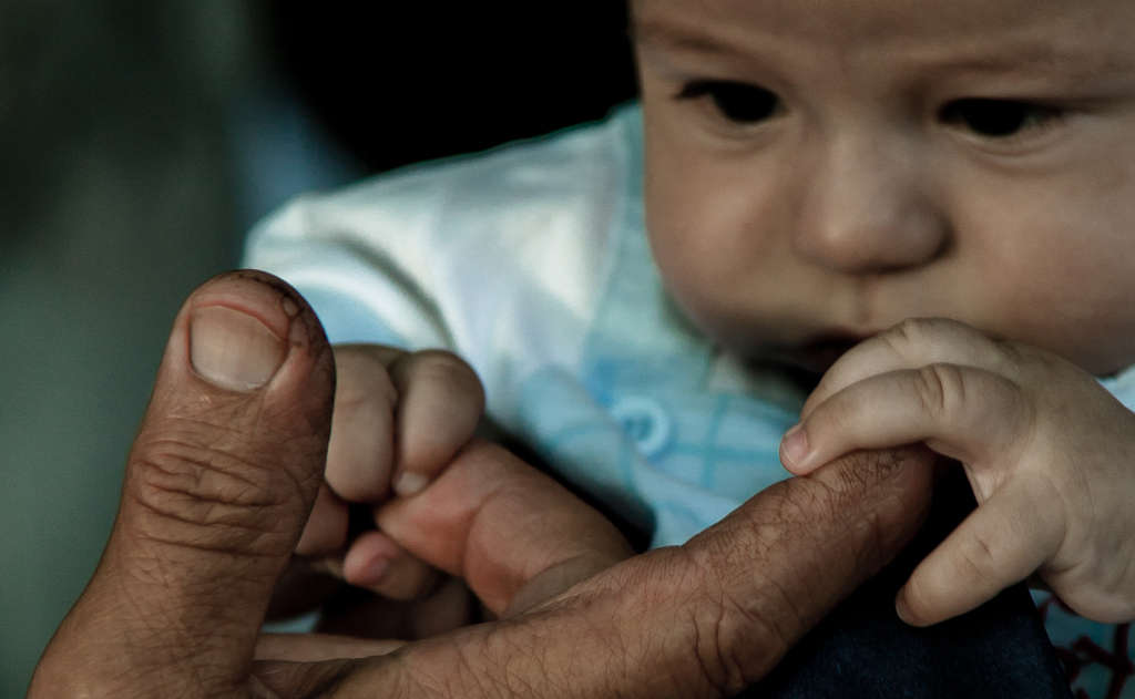 Le mani stanche e consumate dalla vita, che si sarebbero perse con il fuoco centrato sul bambino, associate allo sguardo innocente del piccolo.