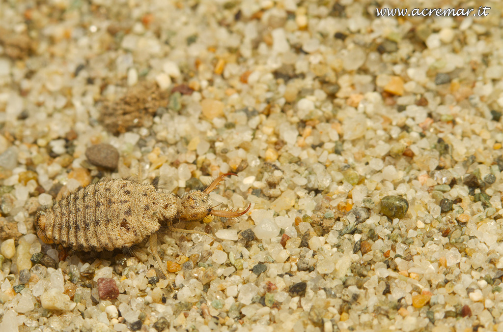 Questa è la larva che poi costruisce un bozzolo sotto la sabbia ed esce il soggetto che tutti fotografano
