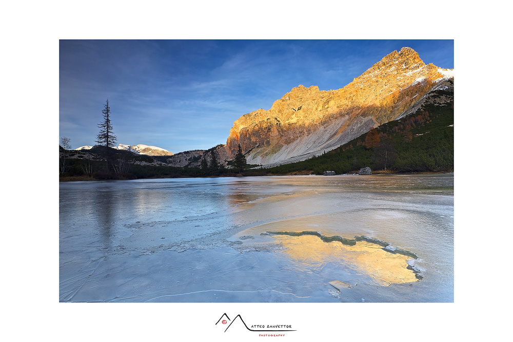 molto bella..bilanciata l'atmosfera invernale che non invade i raggi del sole che rimbalzano sulla montagna per poi finire in primo piano sulla superficie ghiacciata.....ciao...  |