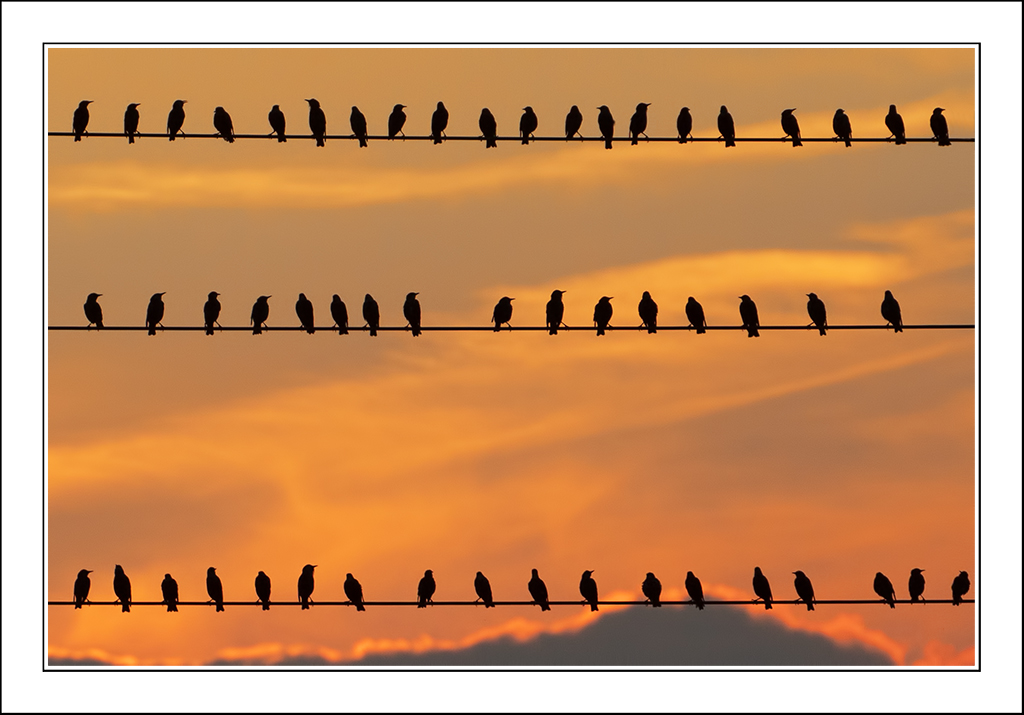 interessantissimo il lavoro di luci e toni che hai saputo proporci : il ritmo del susseguirsi degli uccelli da adito a mille e una interpretazioni. Per me è un bel lavoro.
