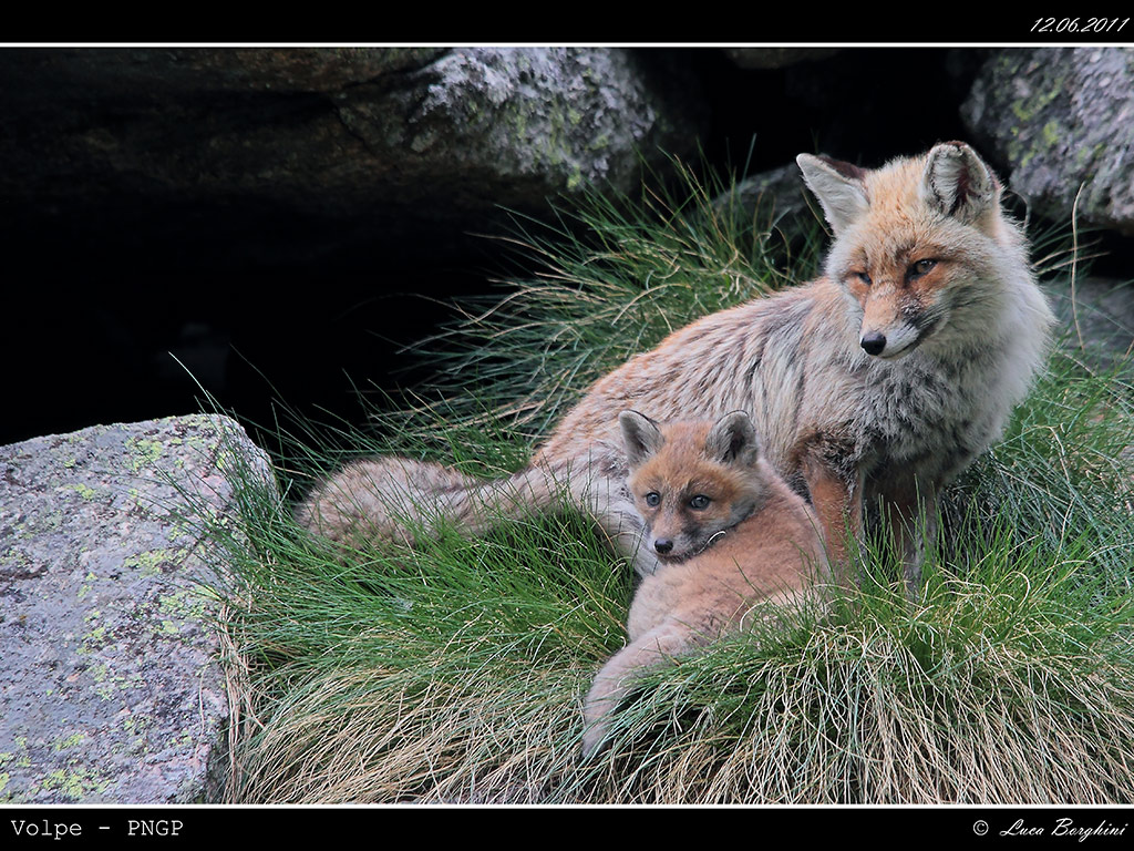 veramente ottima... mi piace il cucciolo che guarda verso di te e la madre che sembra ringhiare in difesa del piccolo!