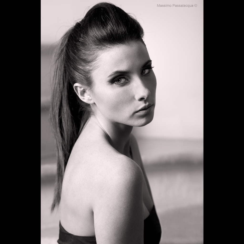 bella la posa con la modella che si volta, mi piace l'inclinazione della testa e lo sguardo laterale..unico neo se cosi si può dire è un pò la posizione della spalla dx che sembra un minimo "ingobbita" passami il termine:-) in avanti