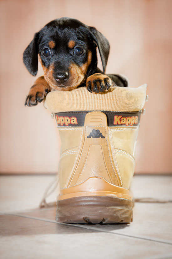 Massimo e' una bassotta di taglia piccola, un mese di vita