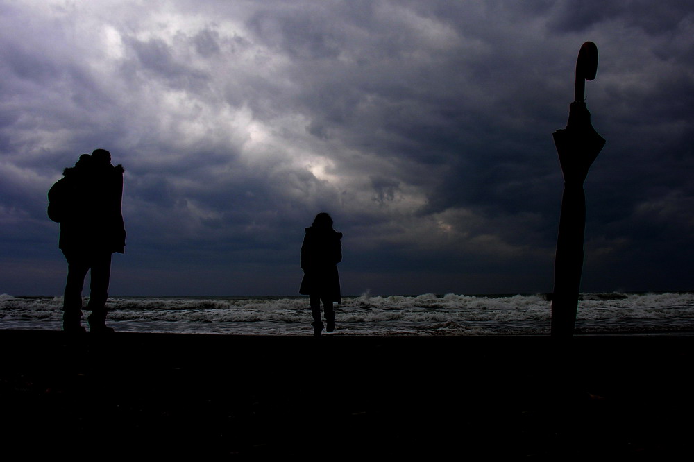 Un'immagine molto suggestiva, o meglio, a mio avviso il mare e il cielo sarebbero stati belli anche senza la presenza dei personaggi umani; sarebbe bastato l'ombrello a suggerirne la presenza; oppure la significativa assenza.