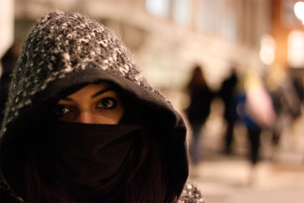 La conseguenza è però che gli occhi della ragazza si perdono un pò nell'insieme dove a farla da padrona sono proprio il cappuccio e soprattutto la sciarpa che copre il viso che, nell'otica di una distrubuzione delle masse, appare non poco preponderante.
