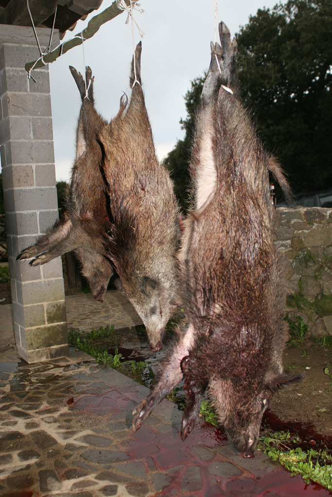 La compagnia che li ha abbattuti era composta da 28 signorotti armati di fucili, se fossere stati 3 contro 3 sono sicuro che lì sopra finivano quelli a due zampe perchè il cinghiale è abbastanza pericoloso.