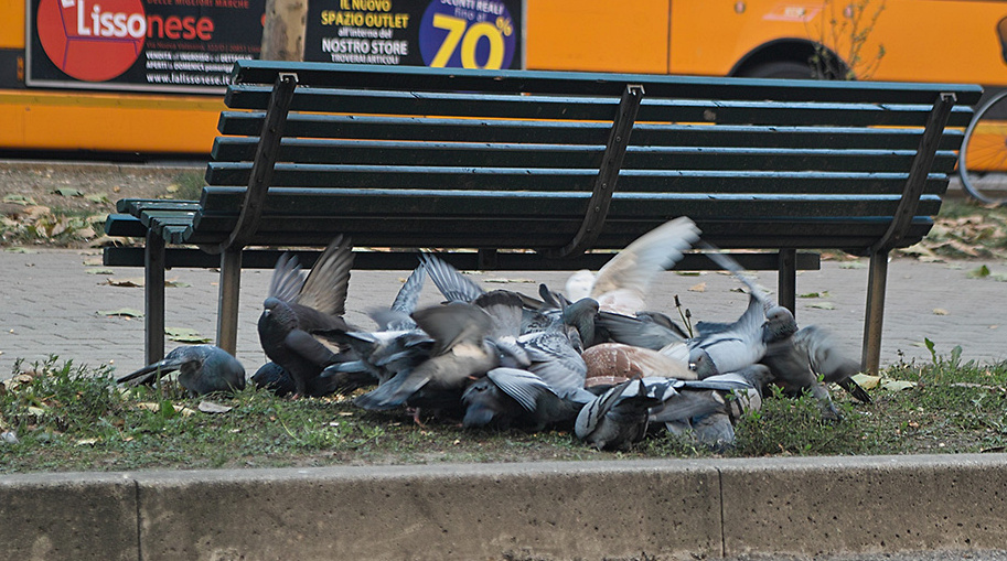 Ci trovo un'idea street di mettere in relazione cartello e piccioni, ma mi pare resti più nelle intenzioni: lo sfocato, la panchina e la scritta non completamente adatta amp separano dal risultato che ti eri prefisso.