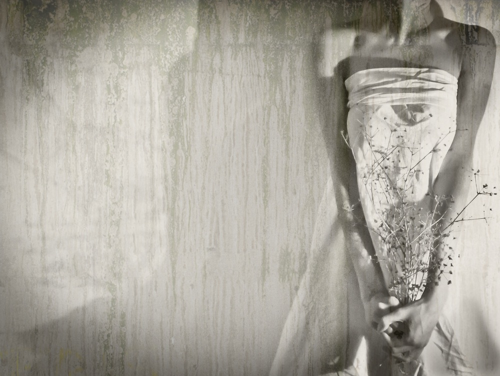 Il taglio in effetti è costringente, ma poichè ritraevo una sposa decadente, con un bouquet secco e un lenzuolo per vestito, dunque mi piaceva che all'emozione di tristezza si aggiungesse una sorta di mancanza di respiro.