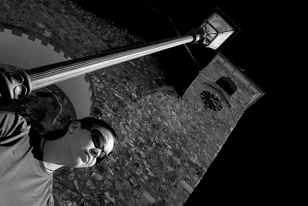 c'è un forte contrasto fra il sole che spara sul viso della ragazza e il cielo completamente nero, il punto di vista è decisamente molto personale