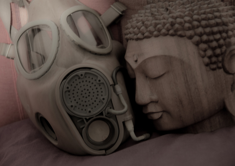 in effetti un buddha e una maschera antigas... hanno valenze simboliche molto forti.